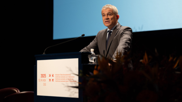 Le conseiller fédéral Beat Jans a participé à la Conférence nationale sur le fédéralisme qui s'est tenue le 13 novembre à Zoug. Dans son discours devant les représentants des cantons, des communes et de la Confédération, il a évoqué les avantages, les défis et les opportunités de notre système fédéraliste : « Le fédéralisme nous oblige à coopérer et à nous impliquer, ce qui crée de la stabilité et favorise l'identification. »